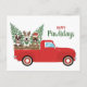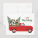 Happy Pawlidays French Bulldogs Red Pickup Truck Holiday Postcard