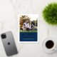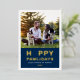 A festive holiday photo card for new pets and pet lovers features a favourite picture of your furry best friend(s) with modern and fun "Happy Pawlidays" dog-themed wording in real gold foil printing with cute paw print accent. Personalise the simple white text with your pup's name, family name, and the year. Bonus optional picture and wording can be personalised on the back of the card. Navy blue background colour on the front can be customised.