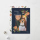 Rustic and whimsical Christmas holiday photo template card for dog and cat owners featuring a script text at the top that says "happy pawlidays" with your pet photo. The background is midnight blue.