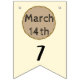 Fun and nerdy bunting banner celebrating Pi Day, sometimes called Pie Day, March 14th, in reference to the never ending number pi, 3.14159....