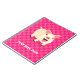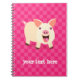 Cute pig has a big smile. Vector drawing, red chequered background. Add your own text.