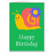 Cute pink colourful snail against a cute grass green background. Colourful girly design. Happy and joyful snail.