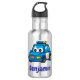 Little police car girls or boys water bottle, personalised with name, featuring a happy little police car. Personalise the design with the owner's name. Buy for your own kid, grandchild, niece or nephew or any police car lover. Designed by Best Baby Gifts - given with love.