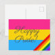 The pansexual pride flag and also the colours of the LGBT rainbow pride flag. And the message is: Happy pride!