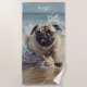 Soak up the sun in style with this beach towel featuring a cheerful pug splashing along the shoreline. The bright, beachy illustration adds personality and charm, making it a standout accessory for any seaside escape, pool day, or picnic. With customisable text, you can personalise it with a name, fun phrase, or special message—perfect for gifting or keeping your towel unmistakably yours.