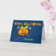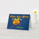 Your nephew will giggle when he sees this delightfully happy pumpkin dancing across a Happy Halloween greeting in his violet dancing shoes, gloves and striped leggings? Text may be personalised in template provided. Adding your nephew's name would make this a very special card.