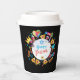 Happy Purim - Paper Cups. Translation from Hebrew: Happy Purim! Purim Jewish Holiday poster with stars of David, traditional Hamantaschen cookies, gragger toy - noisemaker, balloons, musicians, masks, Purim basket on festive colorful background. Wish a great Purim celebration. Carnival, Masquerade, Festival, Kids Party, School Party, Kindergarten, Classroom, Bar Mitzvah, Baby Shower, Birthday Carnival Israel. Crafts & Party Supplies > Party Supplies > Tableware > Paper Cups