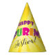 Happy Purim Vintage Yellow Pattern Decoration for Party Hat. Happy Purim! Purim Jewish Holiday pattern with Vintage Decorative Ornament, Purim gifts basket, Stars of David, traditional Hamantaschen cookies, gragger toy noisemaker, balloons, musicians, masks, Purim festive confetti background. "Wish a great Purim celebration!" Carnival, Masquerade, Festival, Kids Party, Israel. Crafts & Party Supplies > Party Supplies > Décor > Paper Party Hats. Trendy Festive Design