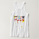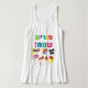 Happy Purim Kids Party Gifts (Colourful Hebrew Text Logo) Decoration for T-Shirt. Translation from Hebrew Text: Happy Purim! Purim Jewish Holiday poster, Vintage Decorative Frame and Text. Purim gifts basket. Stars of David, traditional Hamantaschen cookies, gragger toy noisemaker, balloons, musicians, masks, Purim basket on festive confetti background. "Wish a great Purim celebration!" Carnival, Masquerade, Festival, Kids Party, Israel. Modern Design for Clothing & Shoes > Women > Clothing > Tops & T-Shirts > Tank Tops.