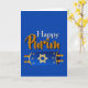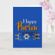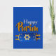 Happy Purim Greeting Card - Blue Gold Torah Scroll