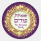 Happy Purim Hebrew Round Gold & Purple Elegant Classic Round Sticker