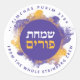 Happy Purim Purple Personalised Hebrew Classic Round Sticker