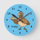 The clock did not take as long to arrive as I thought it might and was extremely well packaged. I didn't do the measurements so I didn't realize it is a little smaller than the average clock but that does not matter (just make sure you check if that's important to you).It is really nifty! It seems very solid and well made not flimsy at all. It has been going well and has kept good time in its few weeks on my wall. Nice product. Gets noticed too! Nicer in real life than the picture but true to the picture