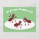 These happy red ants are ice skating! Drawn in fun cartoon style.