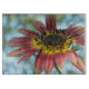 Pretty colours of blues, greens, red and yellow on this cutting board of a happy red sunflower.