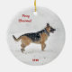 Happy Rescue German Shepherd Dog in Winter Snow Ceramic Tree Decoration