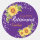 Happy Retirement Floral Sunflower Purple Classic Round Sticker