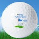 This cartoon golf ball character is standing on a golf putting green and holding a beer celebrating retirement!