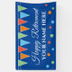Custom Happy retirement party banner with colourful bunting flags garland. Add your own name. Cheerful design with elegant typography template. Perfect for retiring friends, family, co worker, boss, husband, wife, dad, mum, teacher, colleague, nurse, employees, grandpa, grandma, pensioner etc. Personalised decorations for festive party. Also nice for anniversary, bew year's even, wedding or Birthday. Customisable colours.