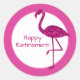 Happy retirement sparkly pink flamingo Custom text Classic Round Sticker