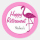 Happy retirement sparkly pink flamingo Custom text Classic Round Sticker.