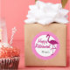 Happy retirement sparkly pink flamingo Custom text Classic Round Sticker