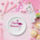 Happy retirement sparkly pink flamingo Custom text Paper Plate