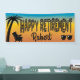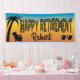 Wish a happy retirement with a beach theme: palm tree, beach chair, sunglasses, a tiki font, and a blue and gold blend background. Edit the name to your guest of honour. Great for someone who loves the beach or is retiring to Florida, or just for a fun retirement party theme.