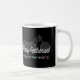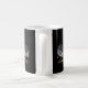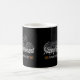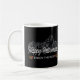 Happy Retirement party gift mug for bikers and motorcycle lovers. Silhouette of a motorcycle on a black background and Enjoy the Ride slogan with orange motorcycle flames.