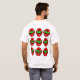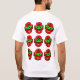 Nine robot heads in red with a stylish green crescent shaped eye panels, green third eyes, with white teeth and highlights. They all have a kind of odd sort of grin as if they are singing a song about motor oil. From an original vector drawing by N.A. Berry. The motif is repeated on both the back and the front.