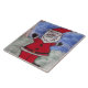 Why Santa is so excited that Christmas is coming he is waving his arms in the air in elation. He has on his best red velvet Santa suit and hat, the vibrant colors a great contrast to the blue of the sky in the background. This cheerful and festive Father Christmas design bursts with the fun and joy of the holiday season.