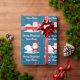 Happy Santa Claus cartoon with sheep Christmas Wrapping Paper. Cute Holiday design for friends and family. Personalized gift wrap for parents, children and babies. Funny joyful illustration with for the winter season. Add your own name and custom seasons greetings like Merry Christmas or Happy Holidays. Customizable background color.