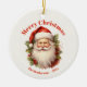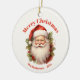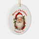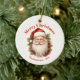 A happy Santa face is on this cute red and white coloured Christmas ornament. It is from a classic vintage watercolor picture. Saint Nick has a wrinkled cap with furry white trim and a long curly beard and moustache. Just like when you saw him when you were a kid! Surrounding him are a bit of lovely green holly and red berries.