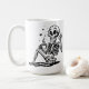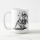 A fun, cartoon-style illustration featuring a chilled-out skeleton enjoying a hot drink, likely coffee or tea, while giving the universal 'OK' sign. The design has a playful, retro cartoon feel, with steam and stars rising from the mug. Perfect for coffee lovers, Halloween fans, or anyone who appreciates quirky, dark humor and the simple pleasures in life—even after death!