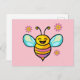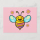 Happy smiling baby bee surrounded by flowers. Kawaii style.