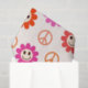 This is colourful smiling retro flowers pattern with peace signs in orange, purple, pink, yellow and red. It's great party supply for kids birthdays