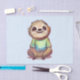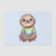 Tissue paper with an adorable illustration featuring a happy looking sloth wearing a green t-shirt. Sitting cross-legged looking relaxed.