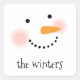 Your friends and family will smile this winter season with these cute custom snowman stickers. Design features a jolly snowman with warm rosy cheeks, a carrot nose and smile made of coal. Snow white, black, pink and orange design colours. Personalise with your family name or other holiday text.