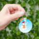 Fully customisable blue, snowy, winter holiday keychain with a happy snowman waving. The snowman is on a separate layer so it can be easily resized or moved … just click on "Customise" button.