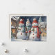 Vintage Christmas holiday greeting card with a painting of three happy snowmen. Personalised on the back with your message and name. Contact me for assistance with your customisation or to request additional matching or coordinating Zazzle products.