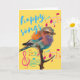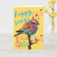 Happy Songs for a Happy Birthday. A colourful bird, music, and bright colours are featured on the cover of this card. Art, image, and verse copyright © Shoaff Ballanger Studios, 2022.