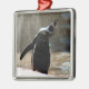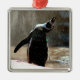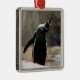 This Humboldt penguin is enjoying the afternoon shower with his or her expression of glee. Penguins are such a joy to watch - very social, amusing, and quite swift in the water. This ornament can remind you of these fun, fascinatng, but endangered creatures. The image is framed in silver-coloured metal and has a metal back.