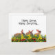 Send a cheerful spring postcard to your neighbours, friends, and family. This seasonal postcard features spring flowers and three rabbits. A darling "happy spring" postcard for everyday or special holiday greetings.