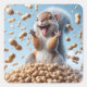 A joyful squirrel stands atop a pile of peanuts with a wide grin, surrounded by peanuts falling around it