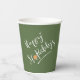 Set a fun table for St. Patrick's Day with the help of this paper cup that features stylish typography of the phrase 'Happy St. Paddy's' in the all the colors of the Irish flag; white text decorated with an orange shamrock on a green background. Search ID336 to see other products with this design.