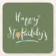 Get into the spirit of St. Patrick's Day with this pulp board coaster that features stylish typography of the phrase 'Happy St. Paddy's' in the all the colours of the Irish flag; white text decorated with an orange shamrock on a green background. Search ID336 to see other products with this design.