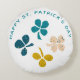 Happy St. Patrick`s Day Shamrock Clover Round Pillow. A Happy St. Patrick`s Day text with Irish shamrock in different colours for luck. Clover has four leaves. You can change the text.