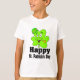 The t-shirt feels and looks great quality, a good thick cotton. It will be a little big for my son, but that means he will be able to wear it and not out grow it too soon. The print was as described on the order when personalised. True size, shape and colour T-shirt- thanks.