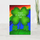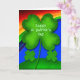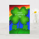 A colourful and bright Saint Patrick's Day design that says "Happy St. Patrick's Day" on a clover. The design has a rainbow in the background.