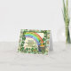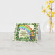 A rainbow, four leaf clovers, a pot of gold and a leprechaun add to the charm of this card.